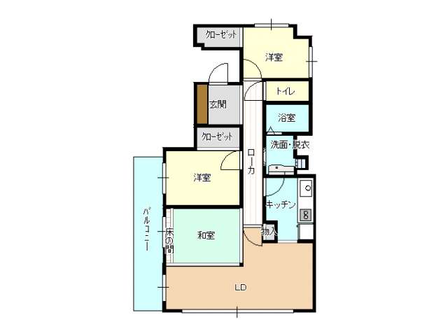 | 詳細間取 | 3LDK (洋帖×2、和帖×1) | ||
