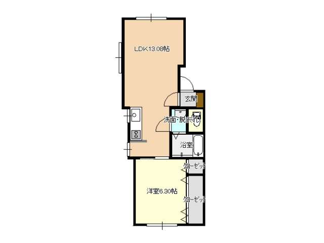 | 詳細間取 | 1LDK (洋6.3帖×1、LDK13.08帖) | ||